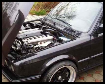 Řadový šestiválec M z BMW E34 M5. Do motorového prostoru se vejde velice natěsno, ale jde to. Buďte ale opatrní, tyto motory jsou nákladné na opravy. Tato úprava již byla v minulosti zhotovena firmou Hartge.